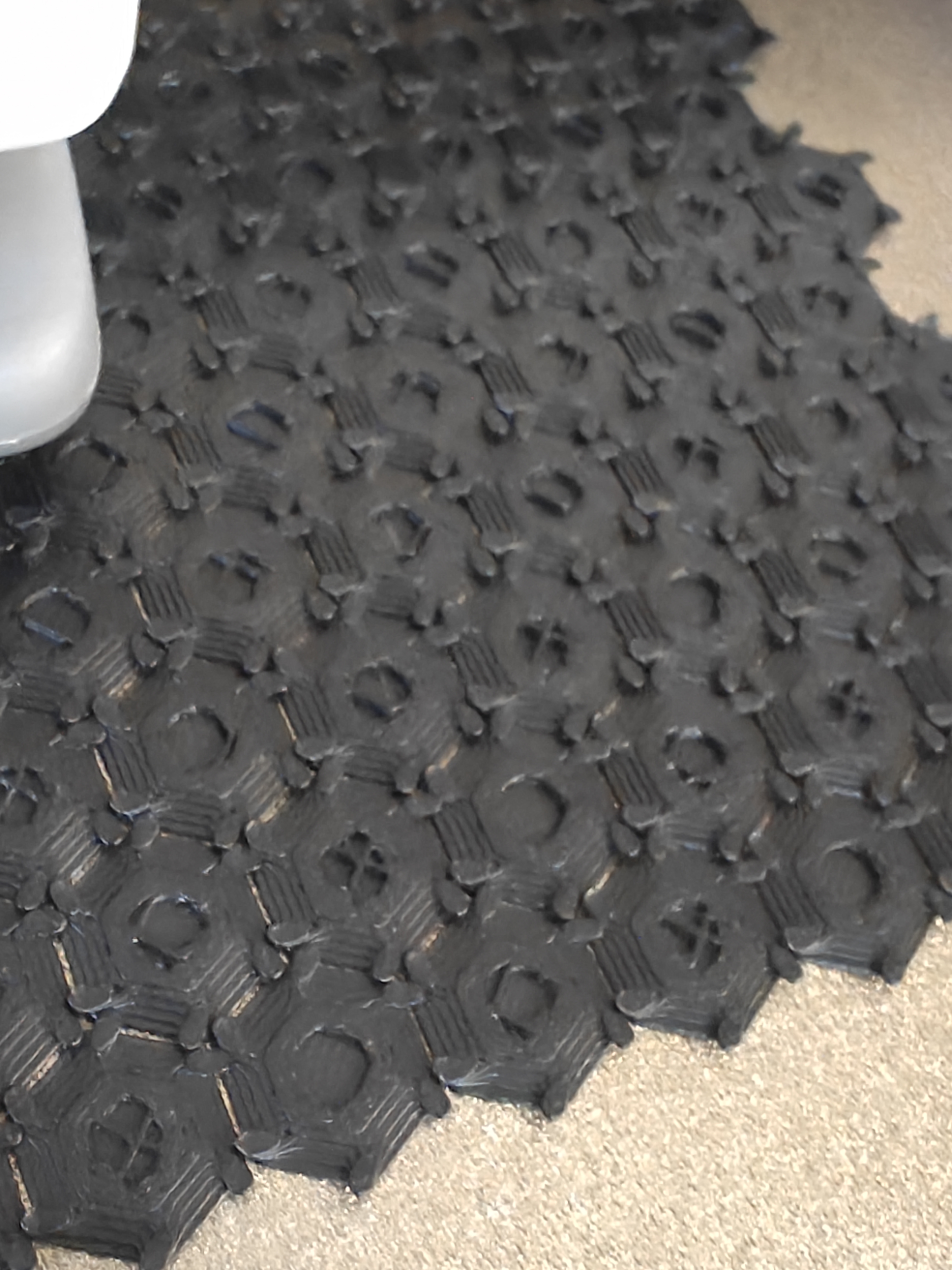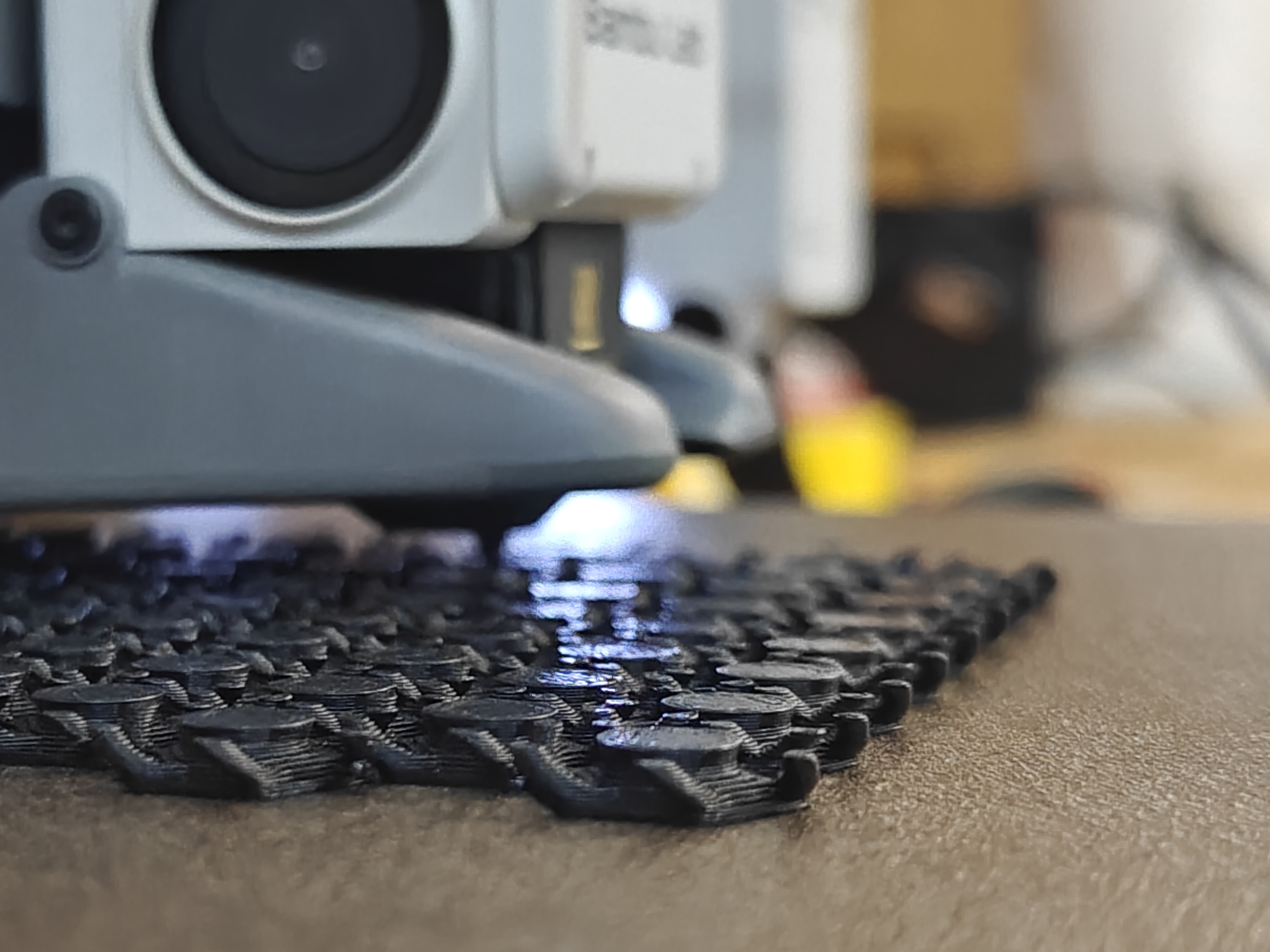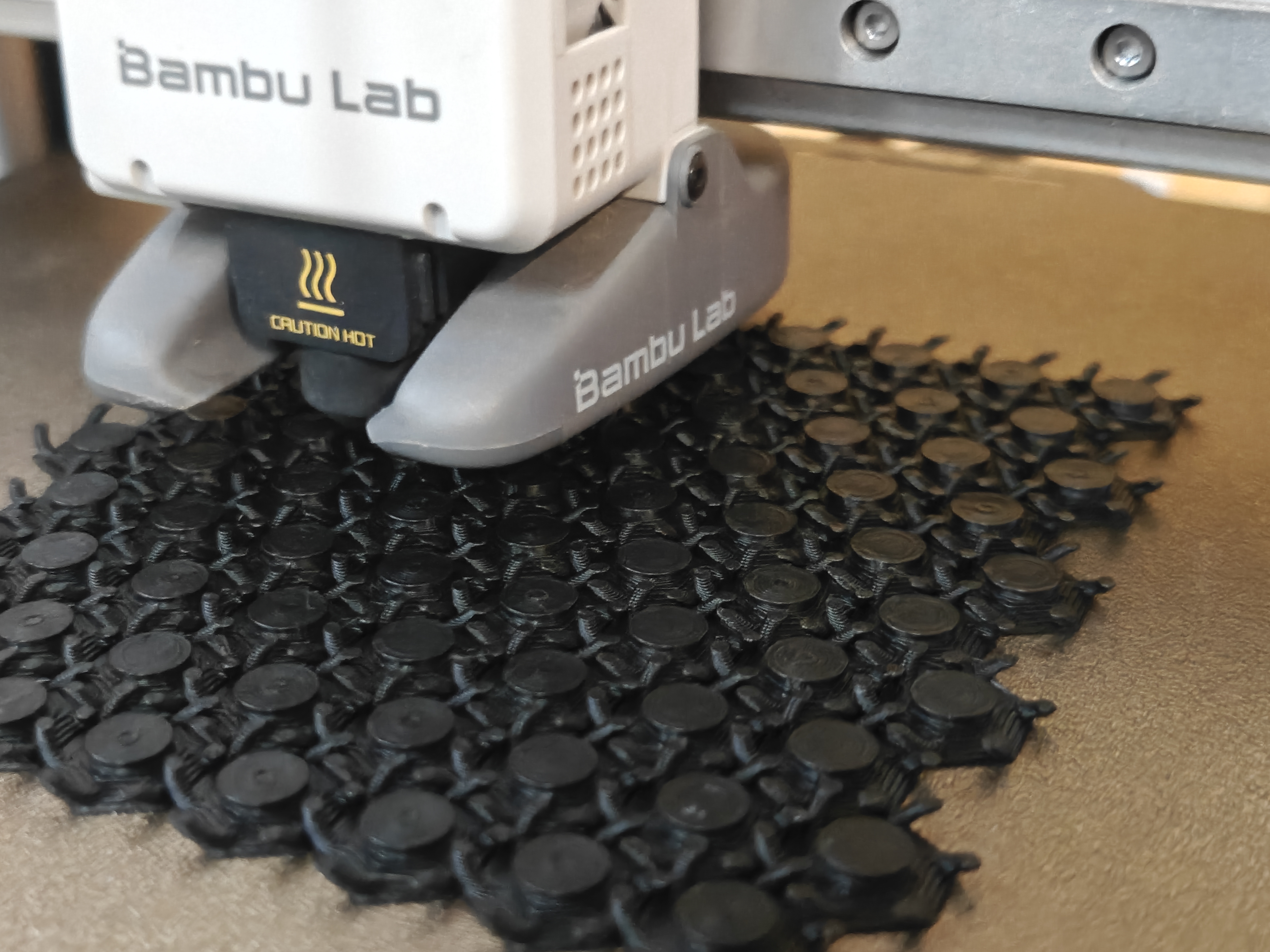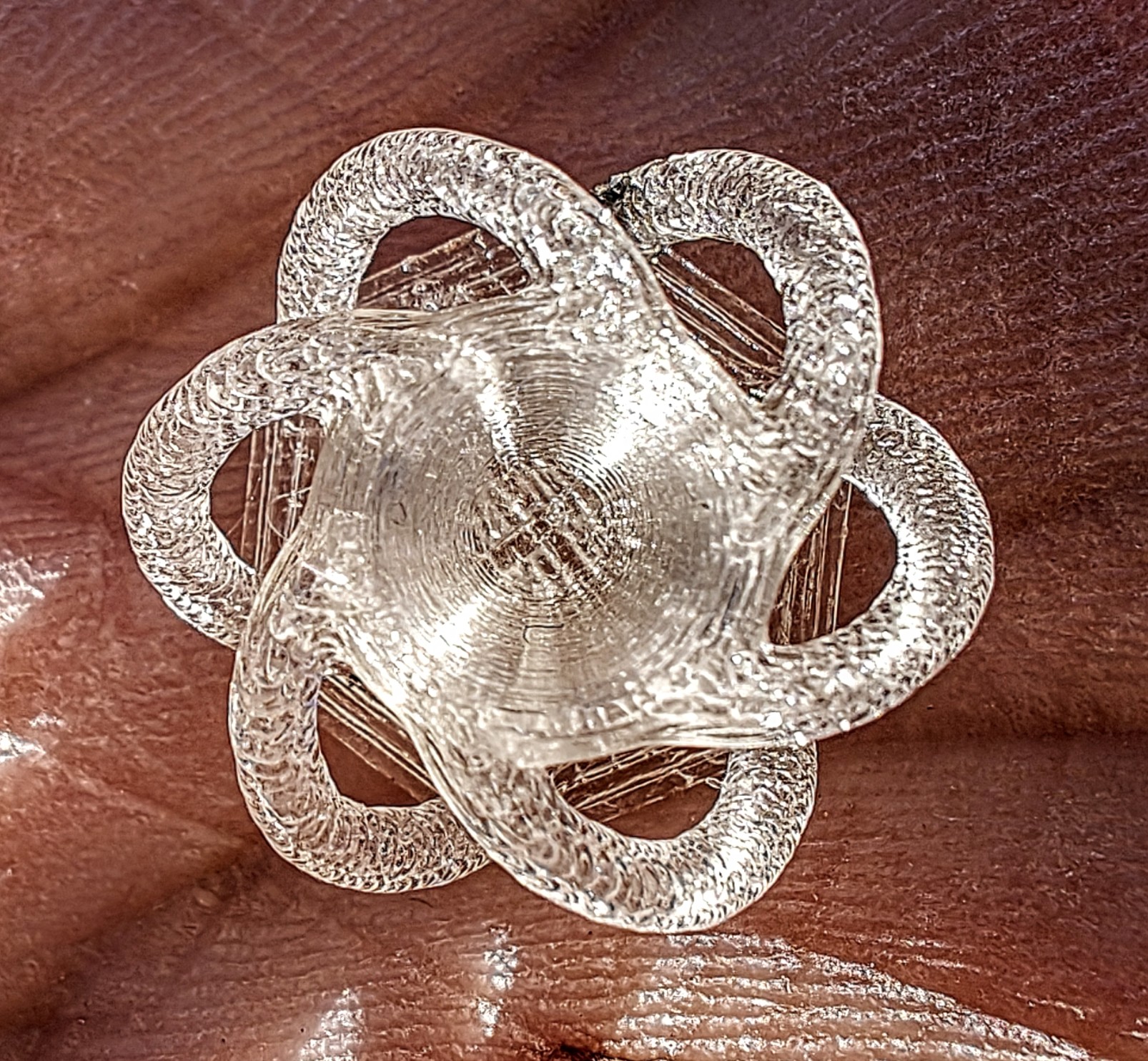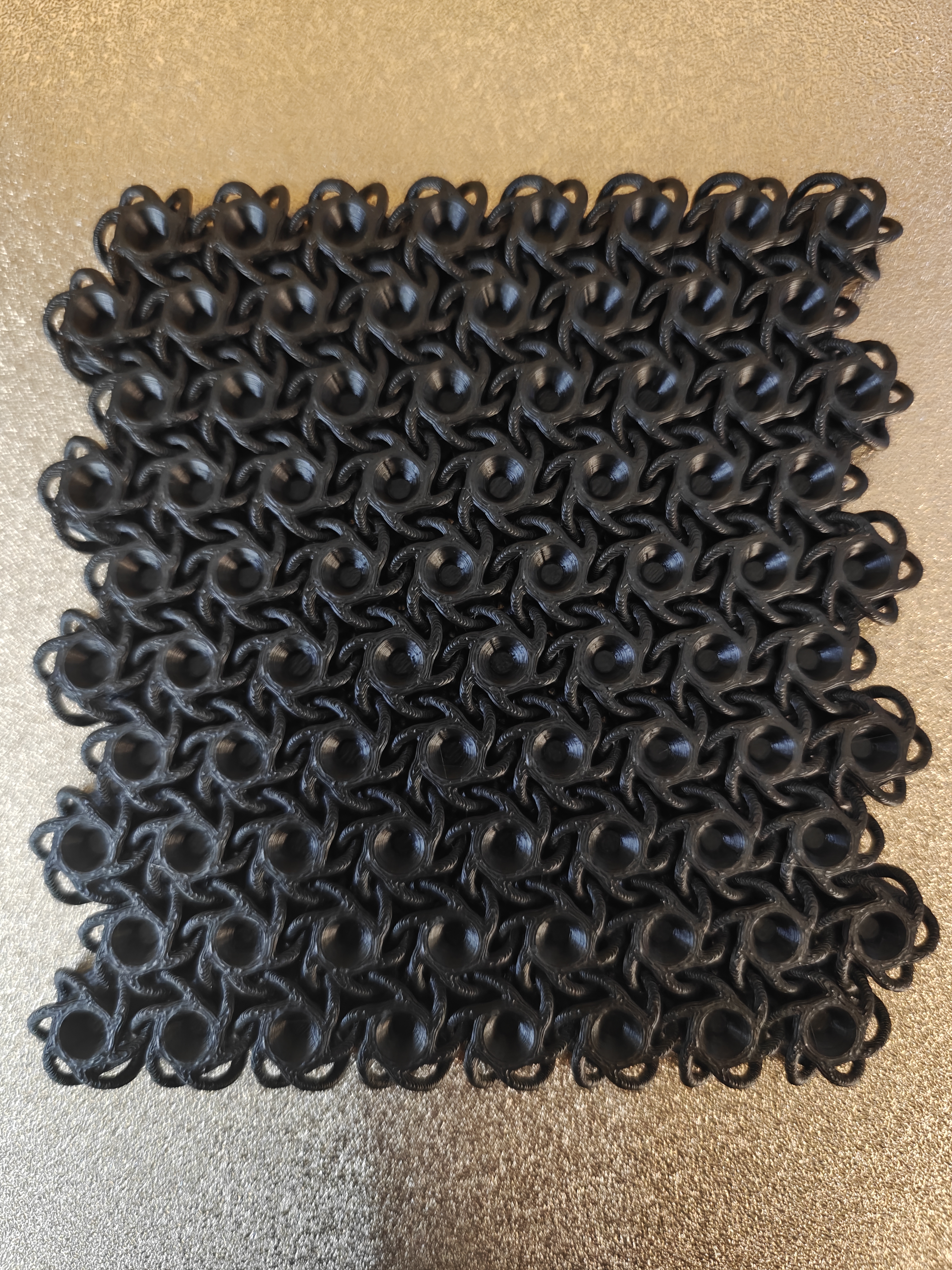 I downloaded a single unit of this chain mail designed by NASA, and put it together and started testing with scale and material. It printed great on the standard opaque PLA, but had some issues with the transparent PLA. The unit tests were fine, but there were errors in the final print for the transparent material (possibly due to the smaller scale). I also tried creating my own design (triangle) which did not work and will have to br redesigned more carefully.