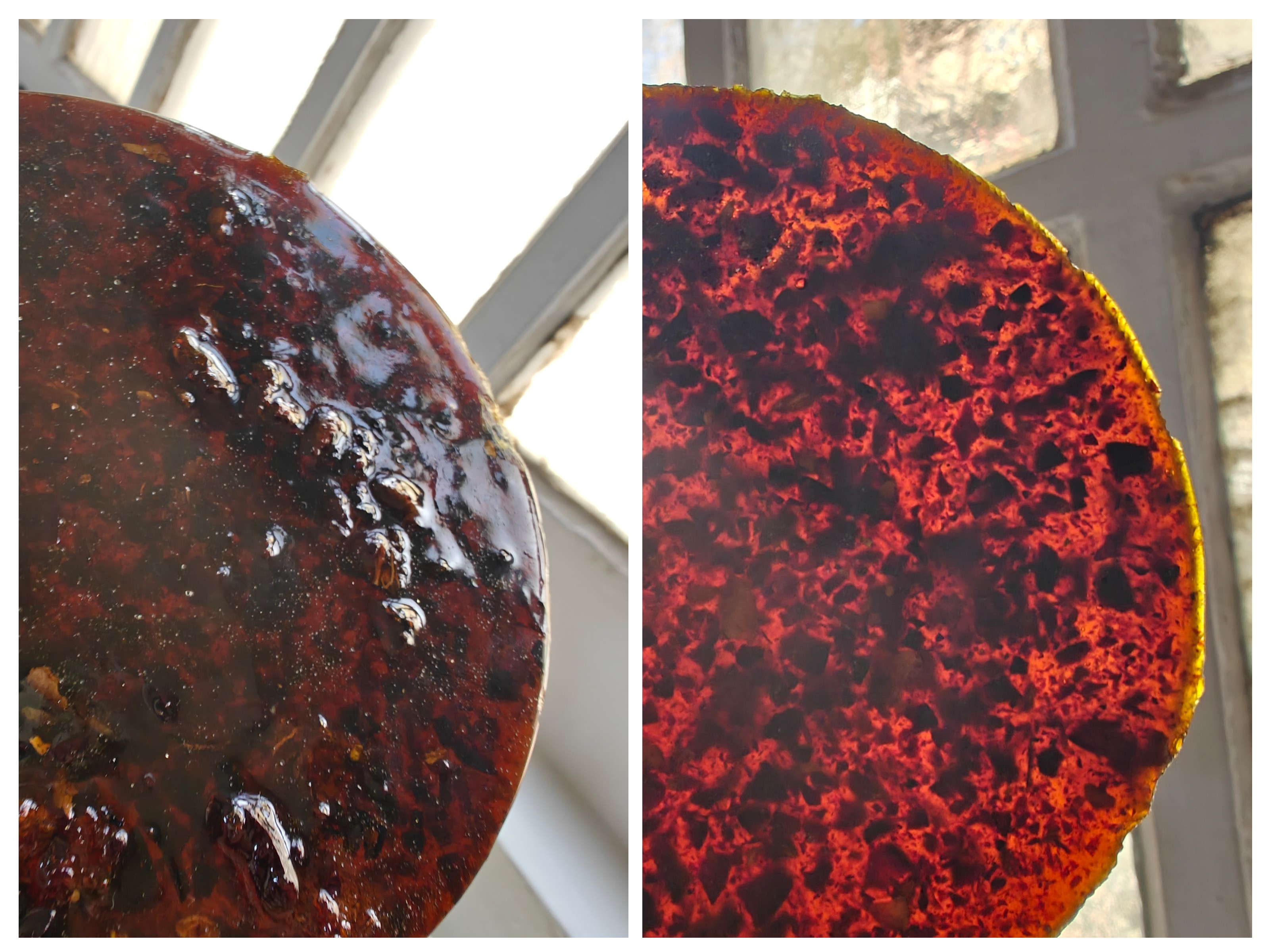 - Add casting wax flakes to the mix. (I used half a handfull, and the result was a bit delicate. Add more for strength, at the cost of transparency)