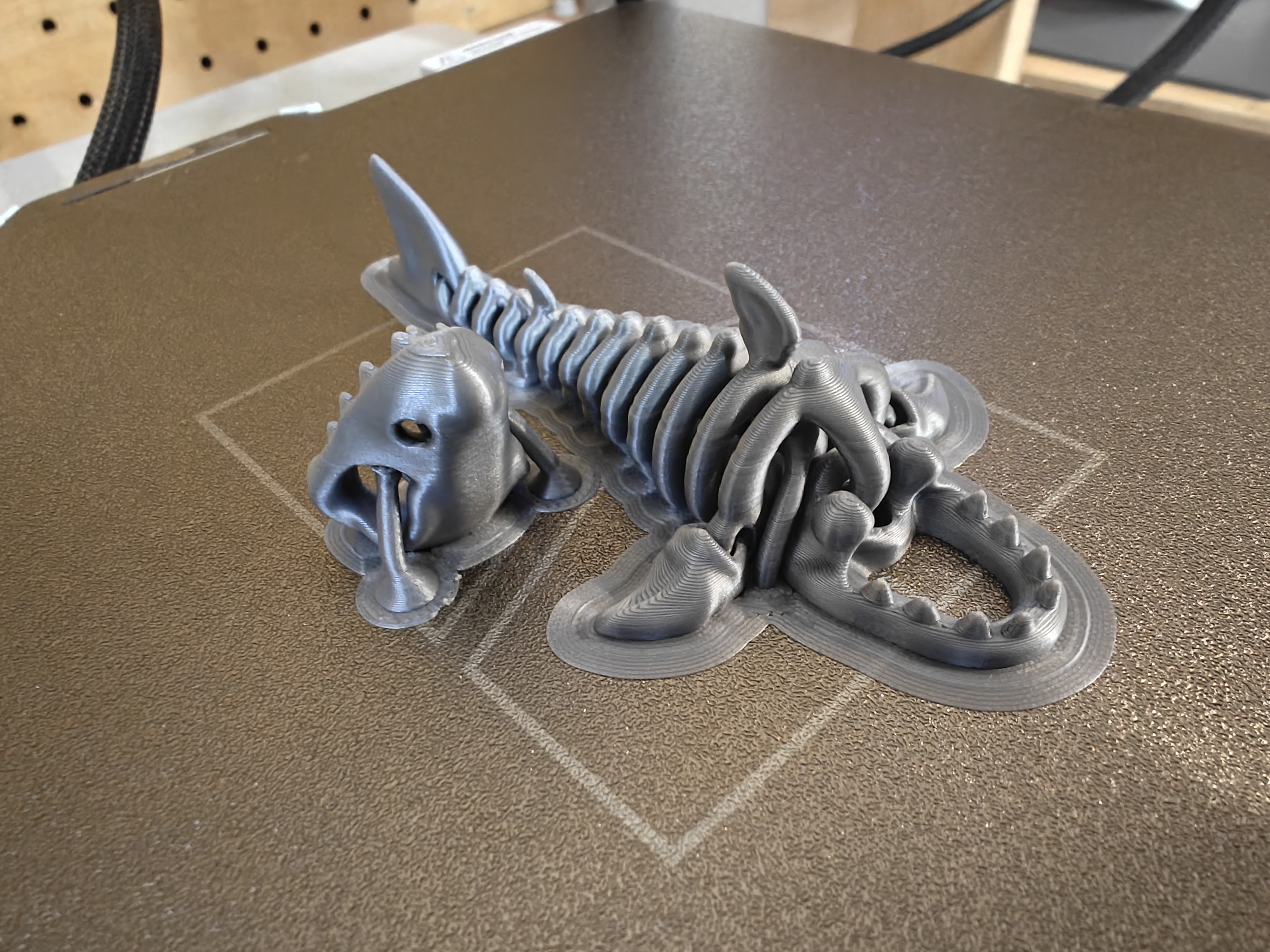 The shark gave me trouble, and the print failed multiple times. This is how I discovered and figured out the ‘brim’ function that finally allowed me to successfully print the shark.